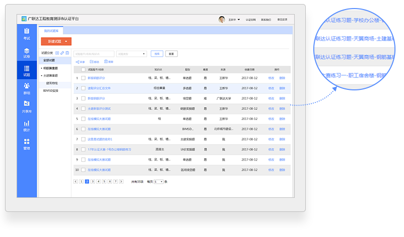 内置丰富的操作题试卷库、图纸库,同时协助老师建立自己的试卷库、试题库,减轻老师出题和编制答案的难度。