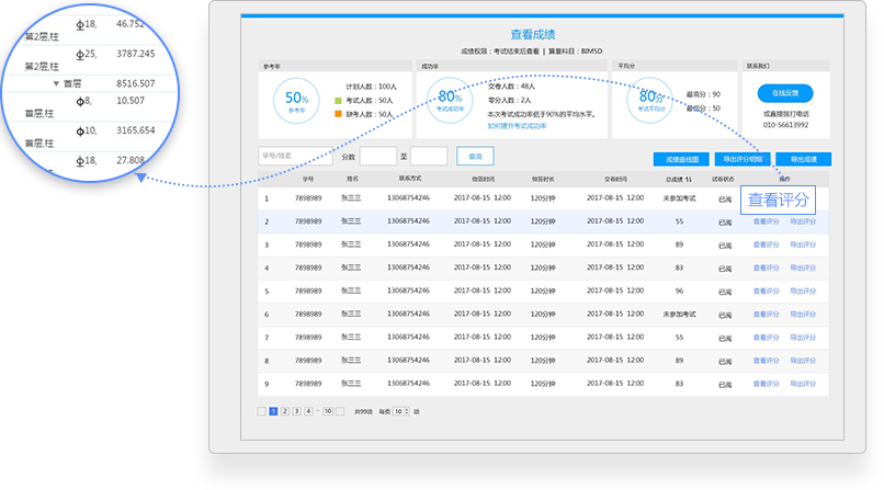 所有题型自动阅卷,一键评分,及输出评分分析报告。