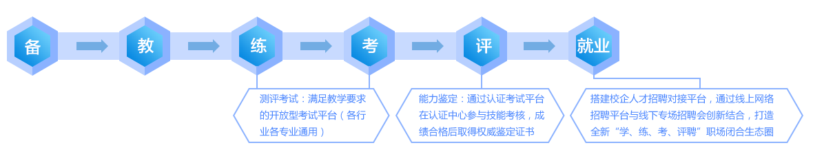 联合企业制定“岗位评价标准体系”,对院校学生能力进行综合评定, 是院校引入“第三方评价”、“双证毕业”的不二选择!